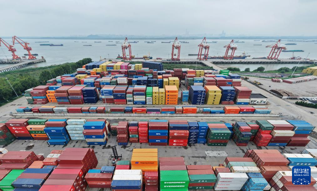 9月8日拍攝的江蘇省揚州港集裝箱堆場(無人機照片)。