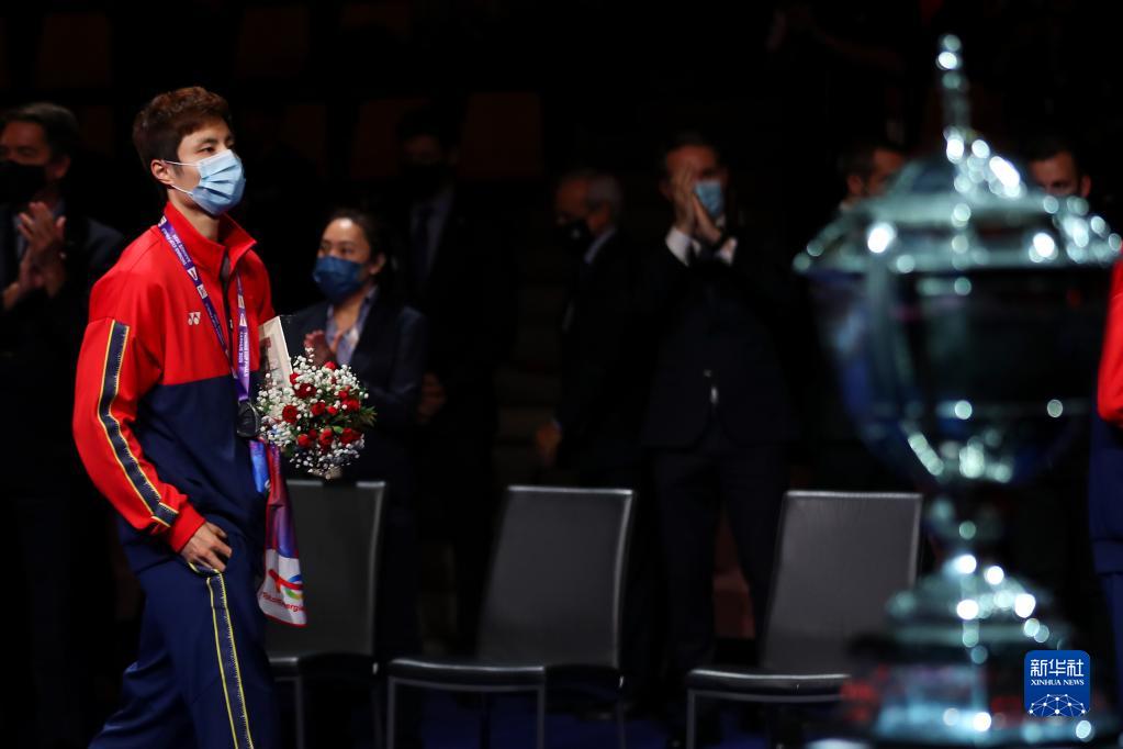 10月17日,中國隊選手石宇奇在頒獎儀式后。