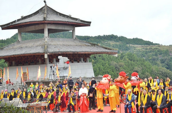 上午9時50分,民間祭祖活動正式開始,全體參祭人員肅立,祭祀大典在莊嚴的鼓樂聲中拉開序幕。社會各界代表依次走上祭臺,先后向華夏母親嫘祖敬獻三牲、繭串、絲綢、紅鞋、果品等貢品。“雍水湯湯,嫘山蒼蒼。巍巍嫘陵,源遠流長。元妃嫘祖,青史留芳。首創蠶桑,絲織衣裳……”伴隨著悠揚的祭文祝禱,四川省嫘祖文化促進會副會長胡治中先生恭讀祭文……隨后,一臺精彩的主題文藝演出掀起民間祭祖高潮。由鹽亭縣民間群眾文藝團體表演的《中國范兒》、舞蹈《采桑舞》《東方圣母》《中華母親》等歌舞節目,歌頌了華夏母親嫘祖的千秋功德,表達了鹽亭兒女自強不息建設美好家園的豪情壯志。