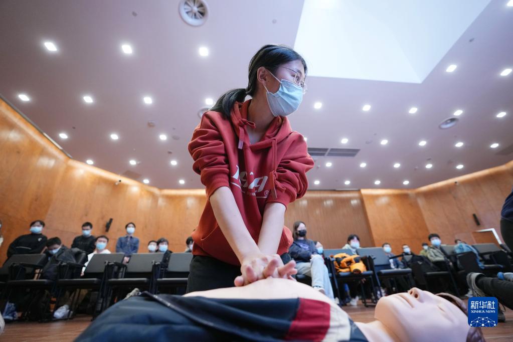 11月28日,清華大學學生志愿者在急救技能培訓上學習急救知識。
