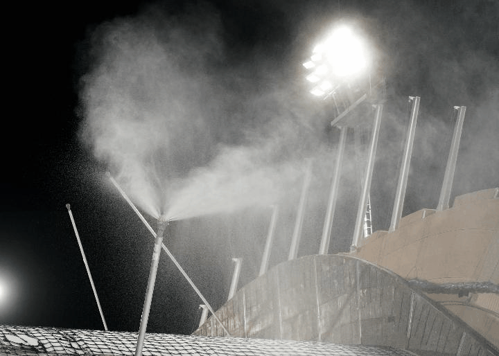 首鋼滑雪大跳臺場館運行團隊場館和基礎設施經理劉玉川介紹,造雪已在場館起跳區和結束區啟動,將逐步向出發區推進。