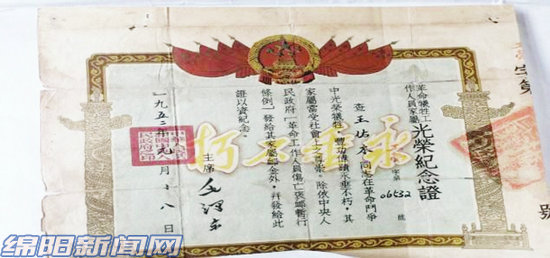 1952年7月18日,毛澤東主席為王右木烈士家屬簽發(fā)了“光榮紀(jì)念證”
