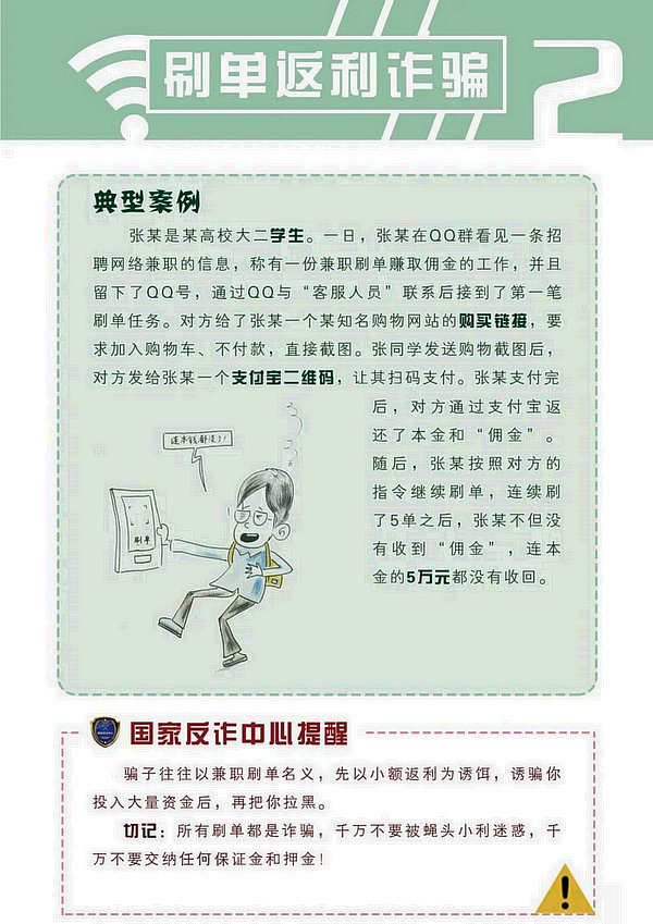 為進一步擴大反詐宣傳覆蓋面,提高廣大群眾防騙意識,國家反詐中心制作了《防范電信網絡詐騙宣傳手冊》,向廣大人民群眾介紹了十種常見的電信網絡詐騙類型,揭批了詐騙犯罪手法、解析了典型案例,同時進行了防騙提示。下一步,將以《防范電信網絡詐騙宣傳手冊》為載體,通過新聞宣傳報道、新媒體平臺、組織線下宣傳活動等方式向全社會開展廣泛的防騙宣傳。