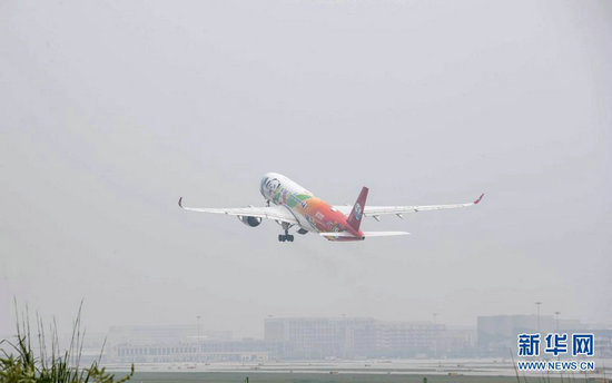 6月27日,四川航空公司飛往北京首都國際機場的3U8001航班在成都天府國際機場起飛,這是該機場投入使用后的首個航班。新華社記者 江宏景 攝