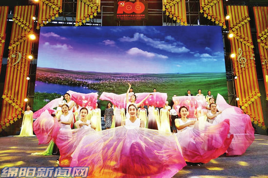 6月28日,游仙經濟試驗區慶祝建黨100周年文藝匯演活動在綿陽市游仙中學舉行(如圖③)。