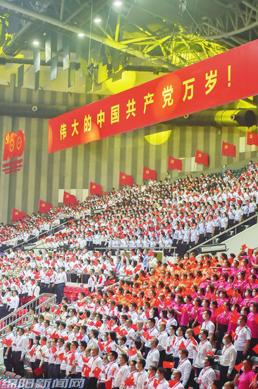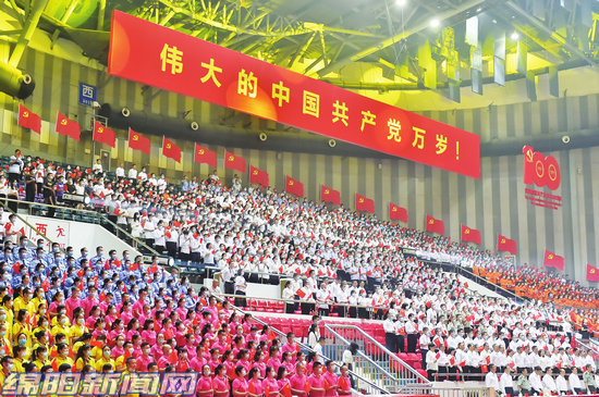 6月30日,九洲體育館內(nèi),黨旗飄飄,歌聲嘹亮,“奮斗百年路·放歌新時(shí)代”綿陽(yáng)市慶祝中國(guó)共產(chǎn)黨成立100周年歌詠會(huì)在此舉行。