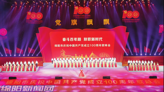 6月30日,以“黨旗飄飄”為主題的“奮斗百年路·放歌新時代”綿陽市慶祝中國共產黨成立100周年歌詠會在九洲體育館舉行。歌與舞中,百年畫卷在綿州大地上徐徐展開,從落后到富強,從封閉到開放。光與燈中,奮進新時代的足音已經響起,凝聚起全面建設中國科技城和社會主義現代化綿陽的磅礴力量。