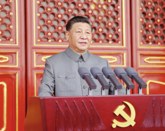 7月1日,慶祝中國共產黨成立100周年大會在北京天安門廣場隆重舉行。中共中央總書記、國家主席、中央軍委主席習近平發表重要講話。 (新華社記者 鞠鵬 攝)
