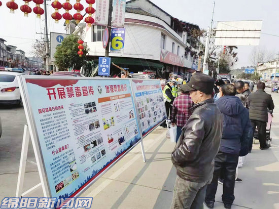 綿陽新聞網訊 近日,記者從游仙區禁毒辦獲悉,為營造全社會共同參與禁毒工作的濃厚氛圍,讓轄區民眾全面了解毒品危害,強化禁毒意識,增強抵御毒品的能力,該區禁毒辦充分利用春節農民工返鄉、趕場的契機,在游仙區各處開展禁毒宣傳。