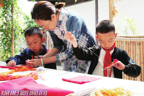為支持媽媽抗疫,姐弟倆和班上部分同學跟著繡娘學習蜀繡,制作香囊。“媽媽在上海方艙醫院工作,我想把自己制作的香囊送給媽媽,希望她早點平安回家!”