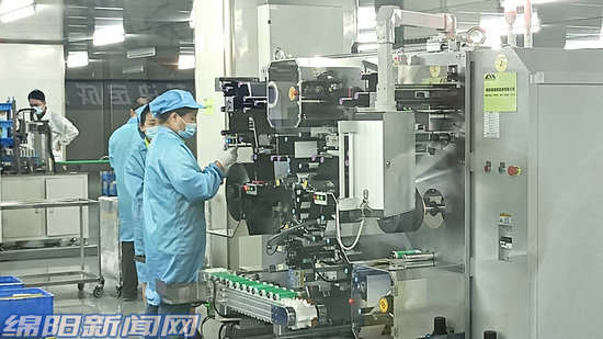 整潔的通道、纖塵不染的封閉車間、聚精會神的工人……流水線上,各種機器有序運轉。綿陽鋰源新能源有限公司是四川唯一一家采用全極耳卷繞圓柱鋰電池裝配專利技術的鋰電池生產(chǎn)企業(yè),以鋰離子電池、鋰離子電芯、動力電池組、儲能電池組、移動電源、電池材料、電子產(chǎn)品及配件技術研發(fā)、生產(chǎn)、銷售為主。項目一期于今年1月正式竣工投產(chǎn),預計2022年全年總產(chǎn)值達4億元,提供就業(yè)崗位130余個。