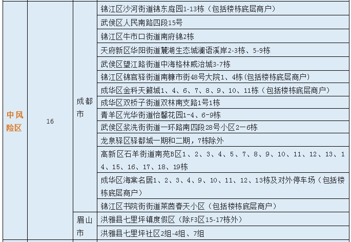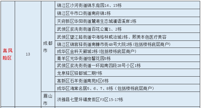 各地要加強對7日內有成都市高中低風險區、7月13日以來有眉山市洪雅縣高中低風險區、7月15日以來有樂山市市中區旅居史的人員排查,并實施分類管理。公眾如近期有相關地區旅居史,要第一時間向所在社區(村)報備,并配合做好各項防疫措施。