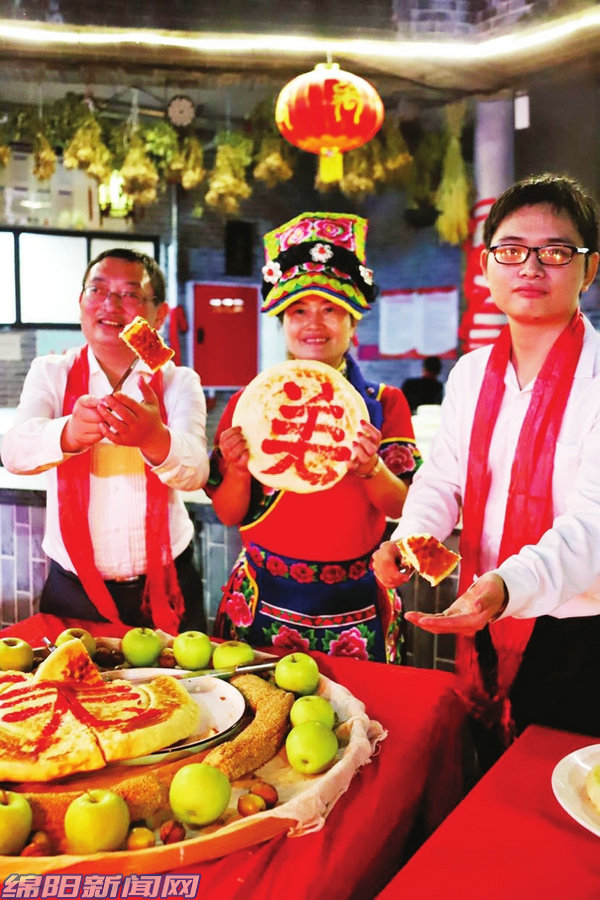 北川羌族自治縣通泉鎮神木羌寨,村民共吃柴火烤羌味大月餅,歡慶中秋。(綿報融媒記者 李春梅 攝)
