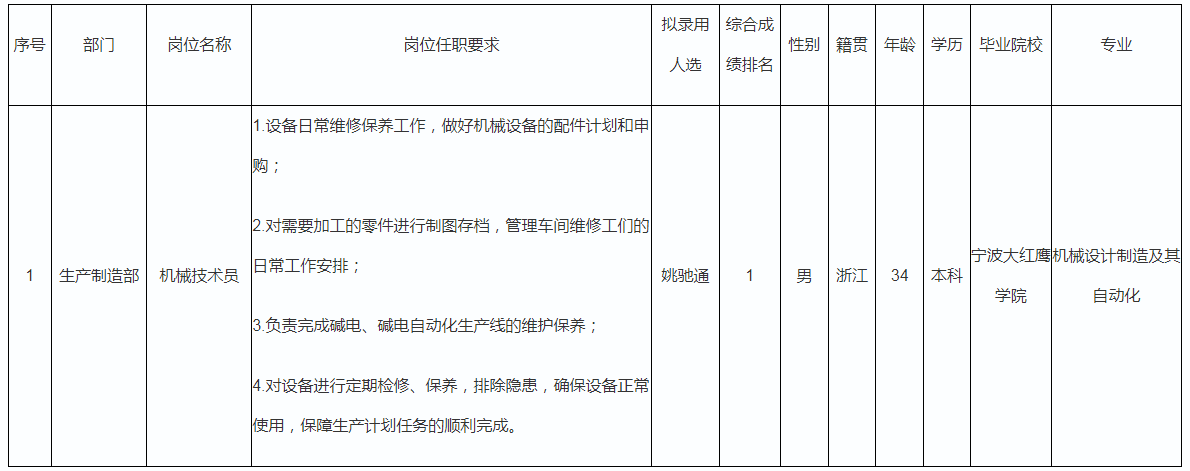 根據浙江長虹飛獅電器工業有限公司發布的招聘公告及招聘相關規定,經筆試、面試、考察、體檢等程序,擬錄用姚馳通同志到浙江長虹飛獅電器工業有限公司工作,現予以公示,具體情況如下: