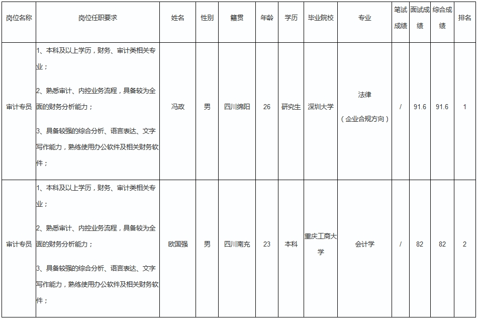 根據四川湖山電器股份有限公司發布的招聘公告及招聘相關規定,經筆試、面試等程序,現將筆試(面試)成績予以公示。
