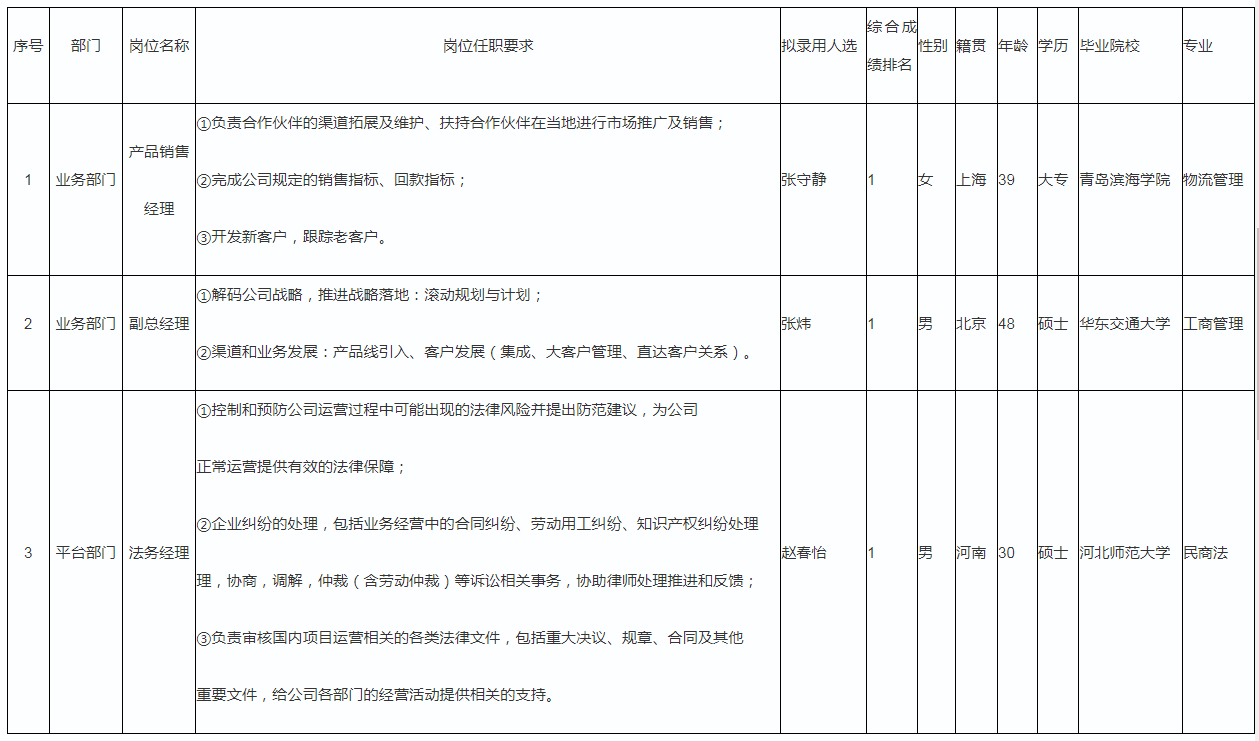 根據四川長虹佳華信息產品有限責任公司發布的招聘公告及招聘相關規定,經筆試、面試、考察、體檢等程序,擬錄用張守靜、張煒、趙春怡同志到四川長虹佳華信息產品有限責任公司工作,現予以公示,具體情況如下: