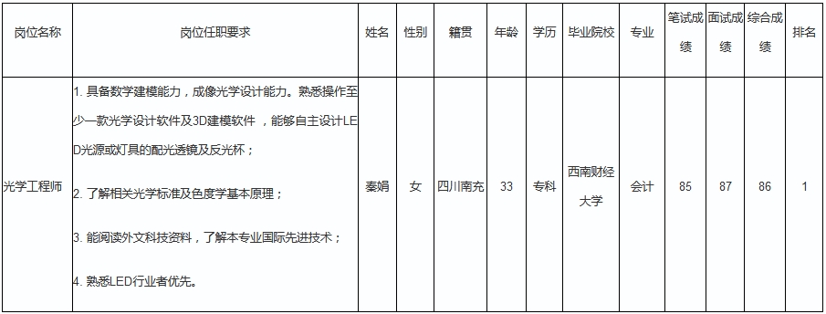 根據(jù)四川九洲光電科技股份有限公司發(fā)布的招聘公告及招聘相關(guān)規(guī)定,經(jīng)筆試、面試等程序,現(xiàn)將筆試(面試)成績(jī)予以公示。