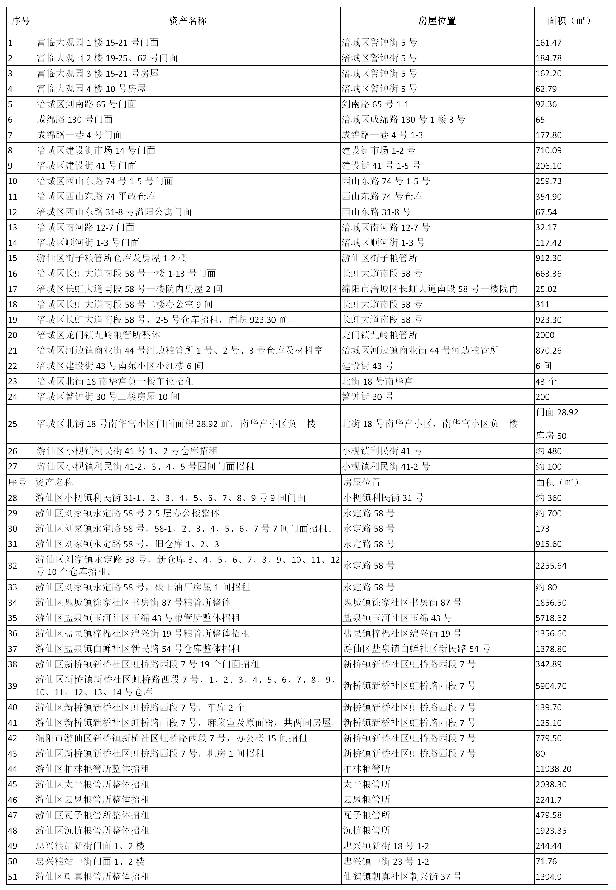 綿陽市眾一糧油有限公司現有門面、倉庫、住房及其他資產面向社會公開競租(詳見競租清單)。