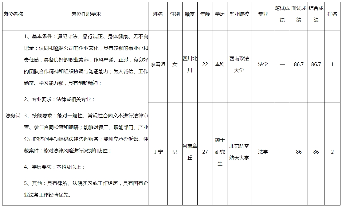 根據四川九洲投資控股集團有限公司發布的招聘公告及招聘相關規定,經筆試、面試等程序,現將筆試(面試)成績予以公示。