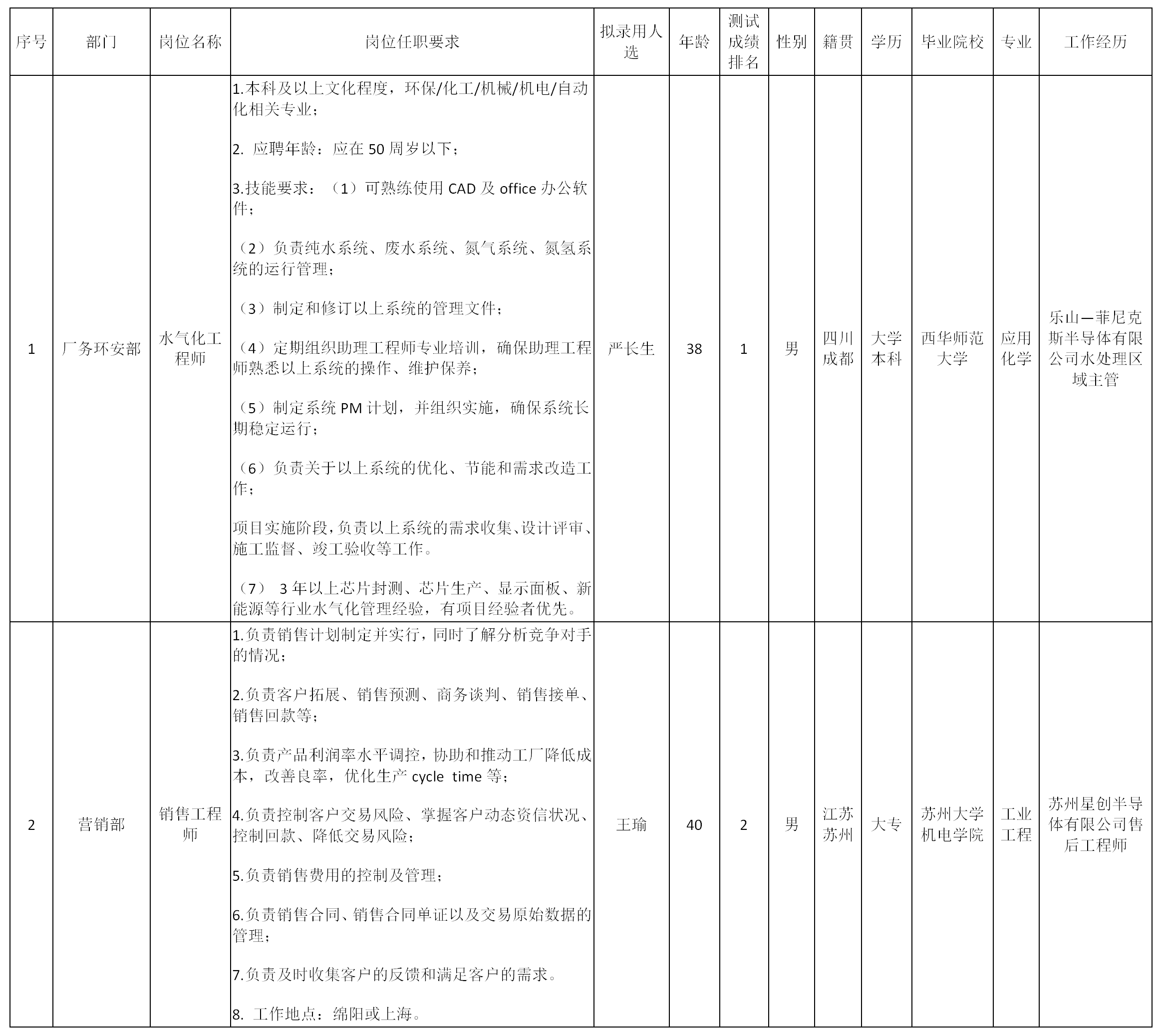 根據四川啟賽微電子有限公司發布的招聘公告及招聘相關規定,經用人單位面試程序,現將測試合格人員予以公示。