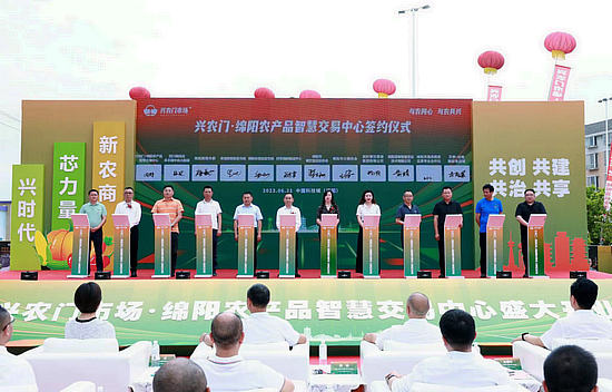 6月21日,川內首個智慧農批市場--興農門·綿陽農產品智慧交易中心在中國科技城(綿陽)舉行開業典禮,四川省商務廳以及綿陽市、涪城區相關領導,國內相關行業協會、省市知名企業及金融機構代表齊聚涪城區龍門農產品物流園區,共同開啟"新農人"智慧時代。