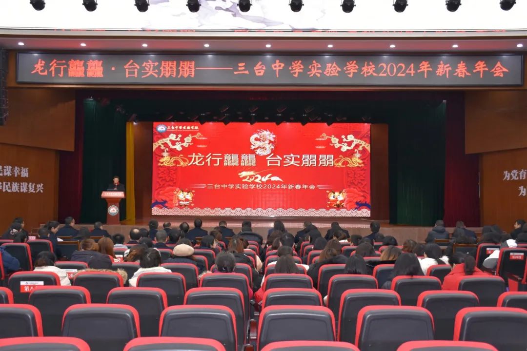 1月28日上午,三臺中學實驗學校舉行了以“龍行龘龘,臺實朤朤”為主題的2024年新春年會。全校教職工歡樂齊聚,年會由副校長陳剛主持。