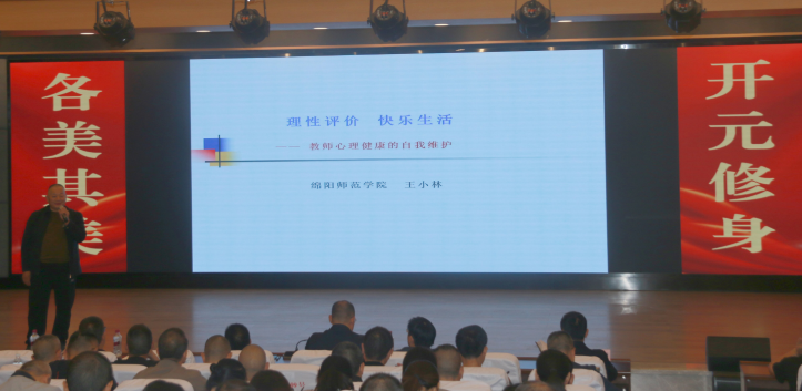 心海揚帆,培訓啟航。2024年10月14日下午,綿陽市開元中學特邀請到綿陽師范學院心理學副教授、綿陽市教育心理學會常務副會長、綿陽市心理咨詢師協(xié)會副會長王小林教授,在該校和美樓六樓學術廳開展了以“理性評價,快樂生活”為主題的教師心理健康教育培訓會,全體教師參加。