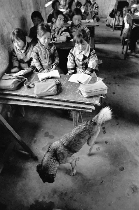 他的鏡頭下,孩子們上學(xué)的路坑坑洼洼,教室的地面也不平整,兩三張木板搭在一起就是課桌。金洪英背著不到半歲的孩子給學(xué)生們上課,一只大狗大搖大擺地從教室里穿過,留下一串爪印。教室外,一位父親透過破碎的玻璃窗向教室內(nèi)張望,臉上寫滿了新奇和迷茫。