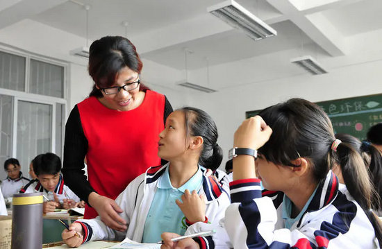1992年9月的東山鄉(xiāng)中心學(xué)校,老師敲擊汽車輪轂代替上課鈴聲。新華社記者陳燮攝