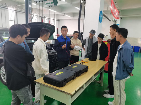 開班儀式結束之后,學員們在班主任老師的帶領下走進汽車運營與維修實訓基地,開啟10月16日--10月26日為期10天的培訓學習。退役軍人事務局副局長劉煒到場觀摩培訓。他鼓勵大家積極進取,保持軍人的優良作風,嚴格要求自己,遵守培訓紀律,認真聽講,充分利用此次培訓機會,提升自己的綜合素質和專業技能。