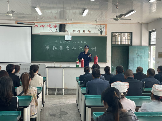 綿陽新聞網訊 為了切實貫徹落實消防安全工作,提高后勤、安保人員消防安全意識和自防自救技能,10月17日,梓潼縣文昌中學邀請梓潼縣消防中隊消防員班長楊勝,到校開展了以“消防安全進校園,筑牢校園‘防火墻’”為主題的2024年秋“消防安全進校園”培訓活動。