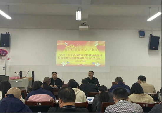 綿陽新聞網訊 為了深入貫徹黨的教育方針,落實立德樹人根本任務,近日,游仙區忠興中學開展了以“弘揚教育家精神,加強新時代高素質專業化教師專業建設”為主題的系列活動。本次活動旨在提升教師隊伍的整體素質,打造一支師德高尚、業務精湛、結構合理、充滿活力的高素質專業化教師隊伍。