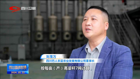四川巴人農藍農業發展有限公司董事長 劉茂萬:按每畝(產)高粱桿7噸計算,通過加工后,可產糖漿800多斤,青貯飼料3噸,加上釀酒和植物飲料,每畝產值可達一萬二以上。