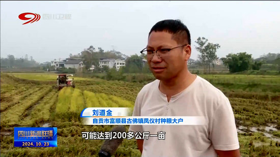 自貢市富順縣古佛鎮鳳儀村種糧大戶 劉道金:再生稻還是(穩)起來了,可能達到200多公斤一畝,今年種水稻的利潤可能有100多萬元。
