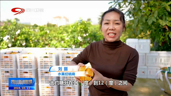 水果經銷商 劉麗:大約糖分在11(度)到12(度)之間,顏色的話,我們是在達夠了八成紅以上才采摘的,這個貨我們預計發往安徽省去銷售。