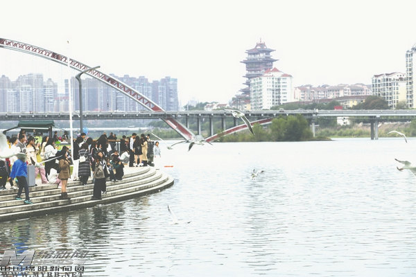 11月2日,大量紅嘴鷗在綿陽三江湖碼頭盤旋,與市民親密互動,時(shí)而展翅高飛,時(shí)而低空掠過人群,時(shí)而翩翩起舞,吸引了眾多游客駐足觀看和拍照。紅嘴鷗的到來為綿陽增添了生機(jī)與活力,人鳥和諧共處構(gòu)成一道亮麗的風(fēng)景線。