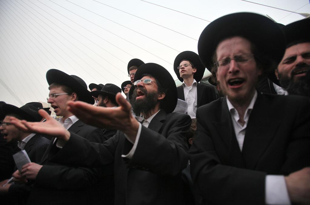 2014年3月2日,正統(tǒng)猶太教徒在耶路撒冷參加大規(guī)模集會(huì)。當(dāng)日,30多萬(wàn)名以色列正統(tǒng)猶太教徒在耶路撒冷舉行大規(guī)模集會(huì),反對(duì)政府推行的旨在要求猶太教學(xué)生服兵役的計(jì)劃。新華社發(fā)(吉爾·科恩·馬根攝)