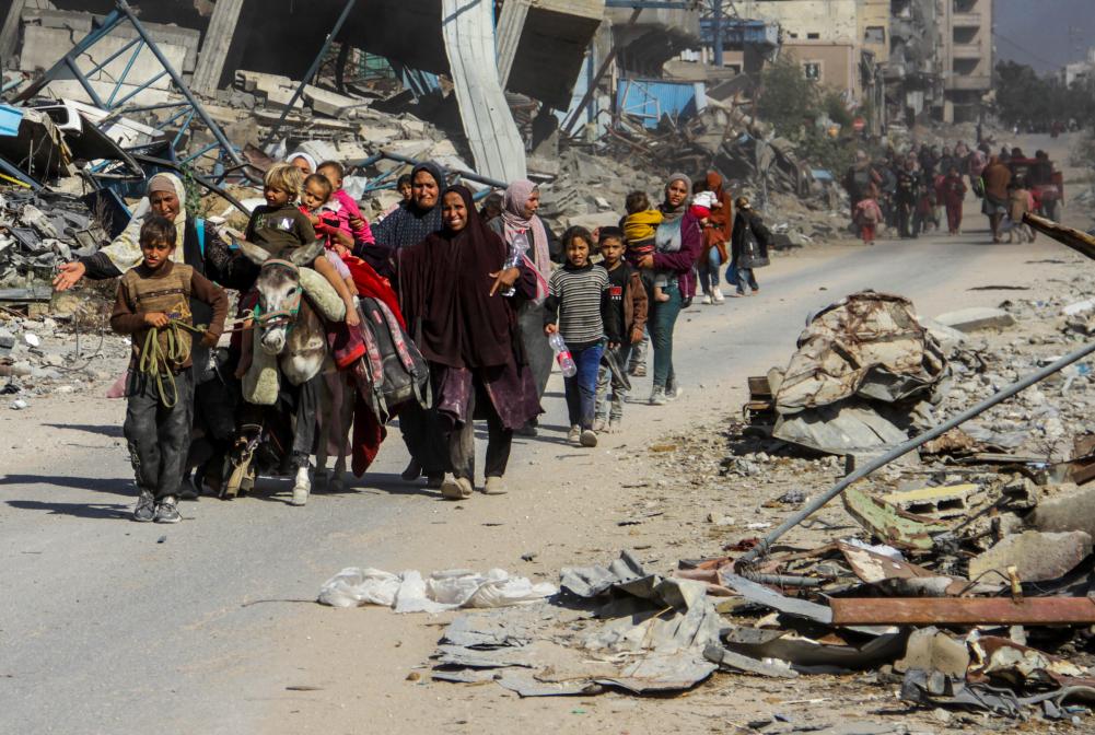 11月5日,巴勒斯坦民眾從加沙地帶北部拜特拉希亞鎮(zhèn)逃到加沙城。據(jù)巴勒斯坦通訊社5日?qǐng)?bào)道,以色列軍隊(duì)4日夜間至5日凌晨轟炸加沙地帶北部一棟房屋,造成至少25人死亡,其中包括13名兒童。新華社發(fā)(馬哈茂德·扎基攝)