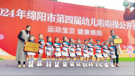 綿陽新聞網(wǎng)訊 11月9日,2024年綿陽市第四屆幼兒啦啦操公開賽正式落下帷幕。由鹽亭縣岐伯幼兒園12名幼兒組成的啦啦操代表隊(duì),經(jīng)過激烈地角逐,最終以總分第一的優(yōu)異成績榮獲自選動(dòng)作——自編舞蹈啦啦操第一名和最佳編排獎(jiǎng)。