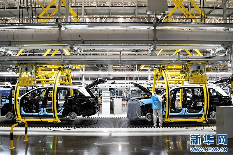 重慶市兩江新區的賽力斯汽車超級工廠智能化生產作業現場。新華社記者 王全超 攝