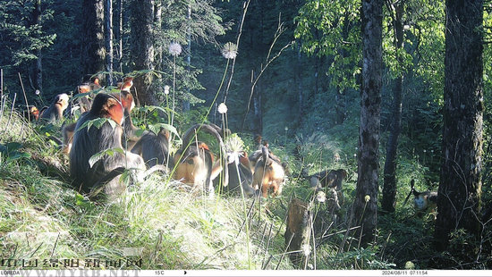 據工作人員介紹,川金絲猴通常以家庭為單位活動,像這樣多家庭組隊“曬娃”的場景實屬難得。這不僅體現了川金絲猴種群在大熊貓國家公園安州片區的良好生存狀態,也反映出該區域生態環境持續改善。目前,大熊貓國家公園安州片區川金絲猴保有量為1200余只,從近幾年紅外相機拍攝到畫面來看,安州片區的川金絲猴數量呈逐年上升趨勢。