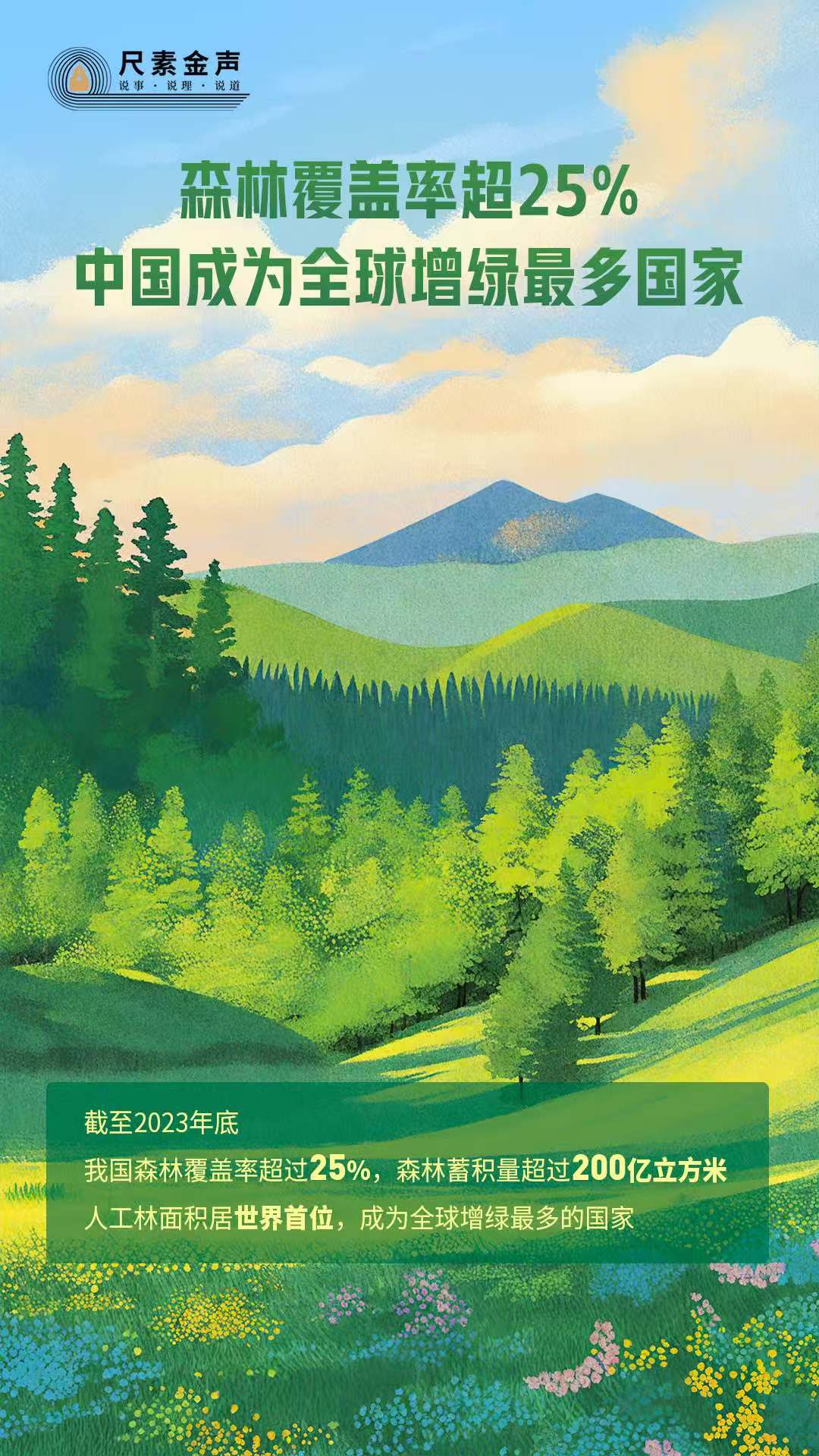 最新數據顯示,截至2023年底,我國森林覆蓋率超過25%,森林蓄積量超過200億立方米,人工林面積居世界首位,成為全球增綠最多的國家。