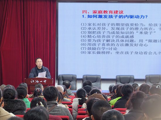 分管校長江達昌老師著重強調高二階段家庭教育的開展要點,指出孩子成長需家校相互理解配合。