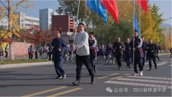 該校黨委書記劉翔宇鏗鏘有力地宣布四川省梓潼中學(xué)校2024年冬季長跑活動開始,發(fā)令喇叭齊鳴,全校師生在激昂的運動員進行曲中出發(fā)了。在該校黨委行政帶領(lǐng)下,師生們步伐矯健、口號嘹亮,圍繞著城北新區(qū)奔跑。
