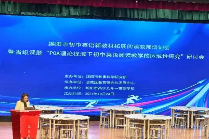 近日,綿陽市高水九年一貫制學校(城北七中)舉行了以“研究新教材 落實新目標”為主題的綿陽市初中英語新教材拓展閱讀教師培訓會暨省級課題“POA理論視域下初中英語閱讀教學的區域性探究”研討會。綿陽市教育科學研究所王能釵老師,綿陽市涪城區教育研究與發展中心教研員陳紅秀老師,深圳市教育科學研究院的李睿老師,南充市教育科學研究所楊娟所長,綿陽市高水九年一貫制學校校長聶孟君女士,深圳市龍華區觀瀾實驗學校謝樑品老師,綿陽市東辰學校周慶老師以及綿陽市實驗中學陳利軍老師參加活動。