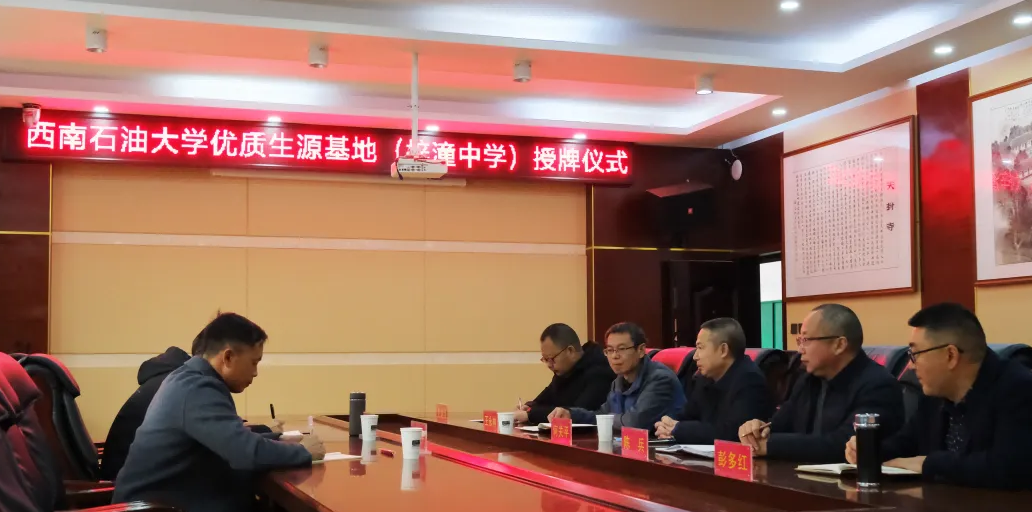 2024年12月2日,國家“雙一流”建設高校西南石油大學“優質生源基地”授牌儀式在梓潼中學隆重舉行。體育學院黨委副書記溫登峰、副院長劉小平、謝成超教授和梓潼中學校長何關平、副校長陳兵、王永林、紀委書記彭多紅、教科室主任魯建榮齊聚一堂,共同見證這一重要時刻。