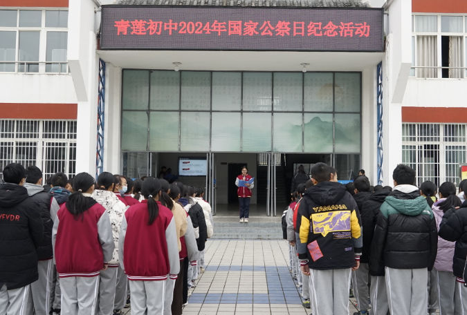 為了緬懷抗戰英烈的英雄事跡,弘揚愛國主義精神,增強同學們的社會責任感和使命感,進一步為中華民族偉大復興的中國夢凝聚力量,12月13日上午,江油市青蓮鎮初級中學開展了2024年國家公祭日主題教育活動。