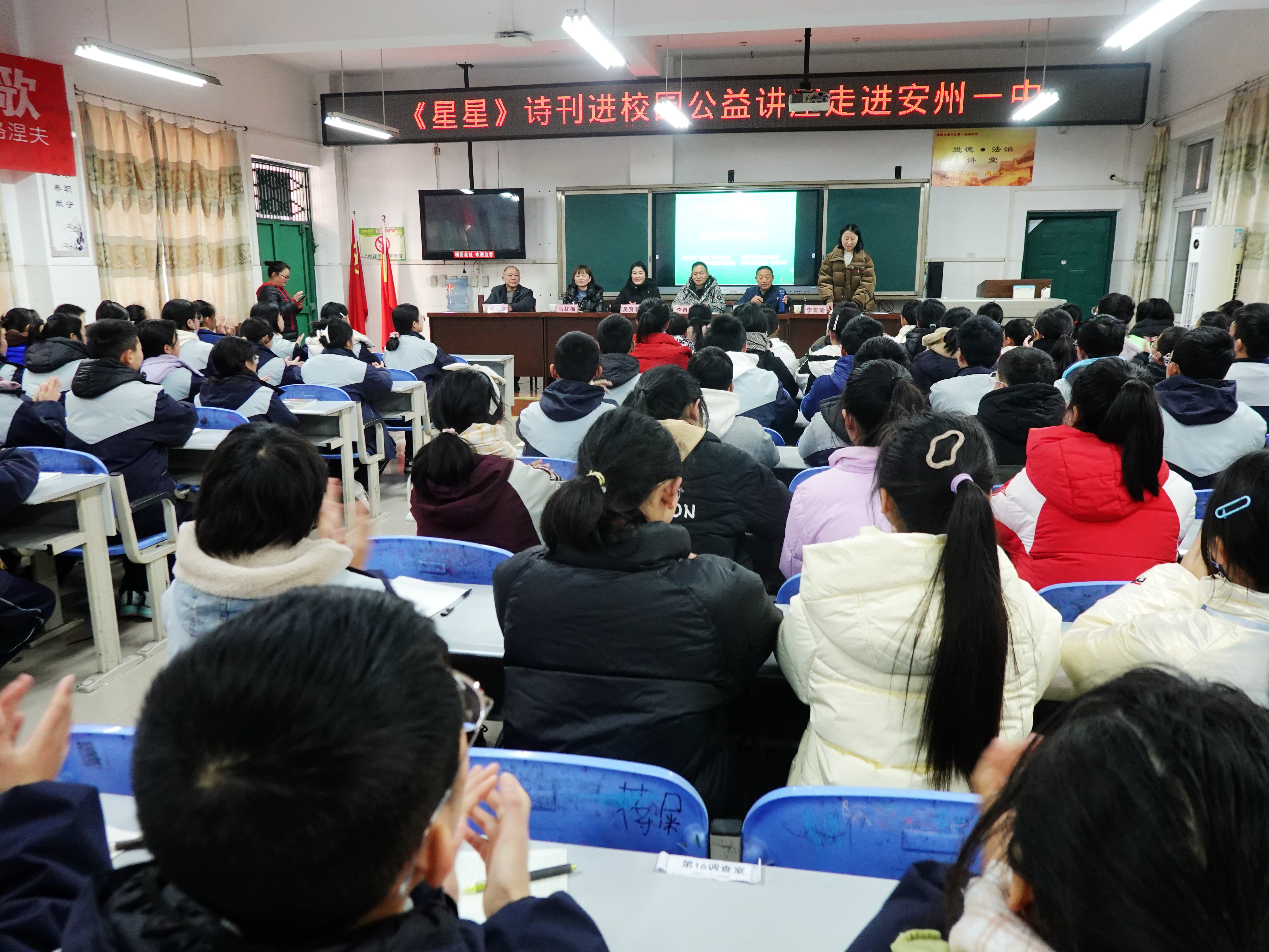 12月26日上午,安州區第一初級中學成功舉辦了以“ 棲詩于‘星’筆繪夢想”為主題的2024年秋“校園文學詩與遠方”專題公益講座。