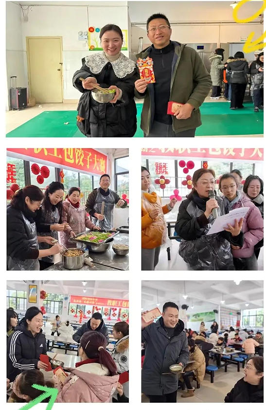 幸福不止味蕾的觸動,還有咬到“彩頭”的激動。該校領導們也大展身手,包了66個彩頭餃子,為全校教師送去新春最美好的祝福。吃到彩頭餃子的老師便能得到學校領導們準備的新年紅包,寓意著這一年都有好運氣。