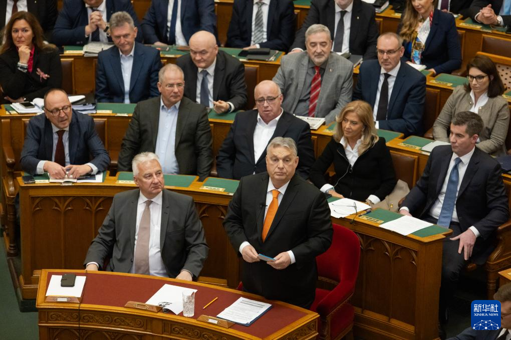 2月26日,匈牙利總理歐爾班(前右)在布達佩斯舉行的國會春季會議上致辭。新華社發(弗爾季·奧蒂洛攝)